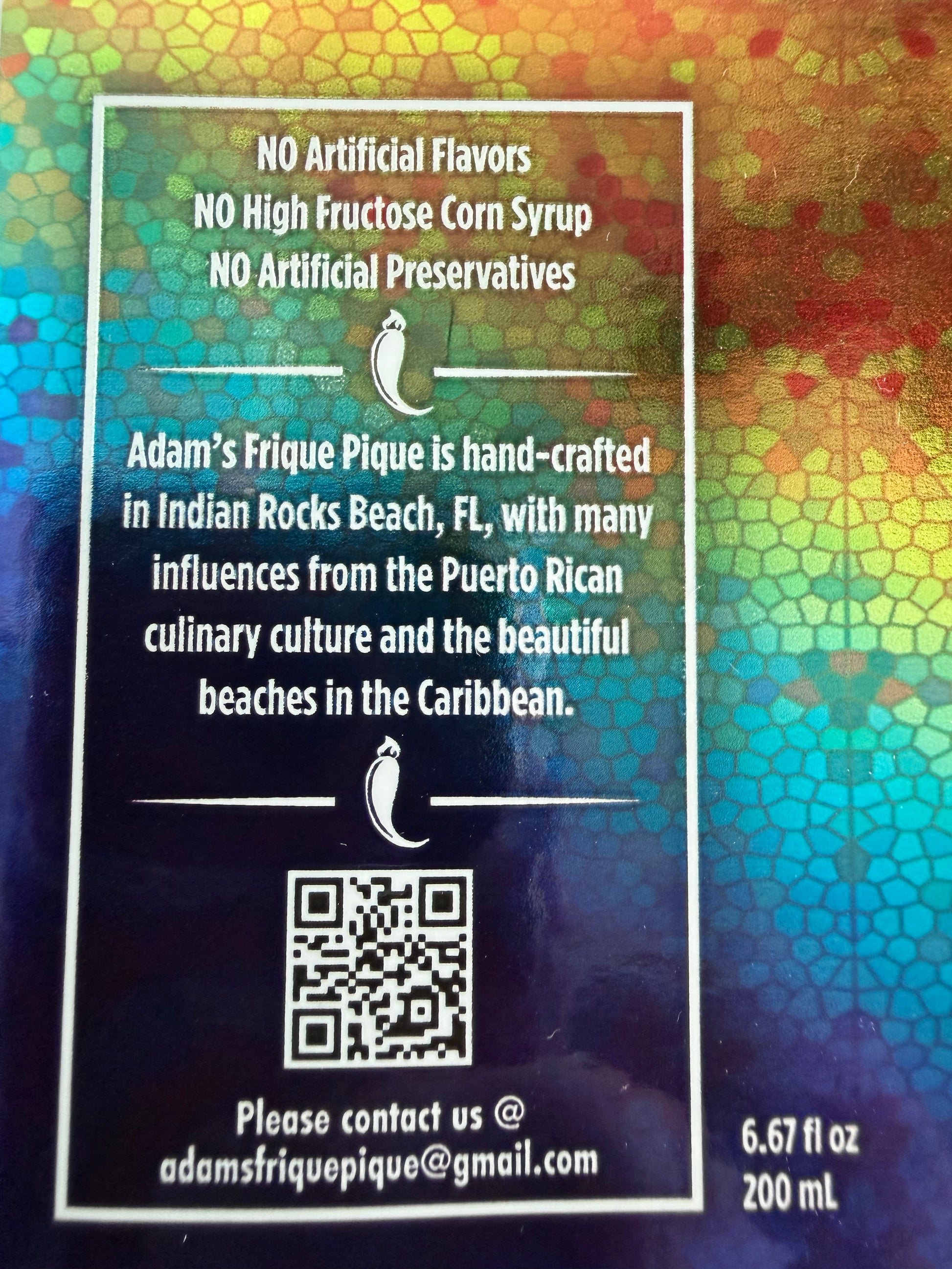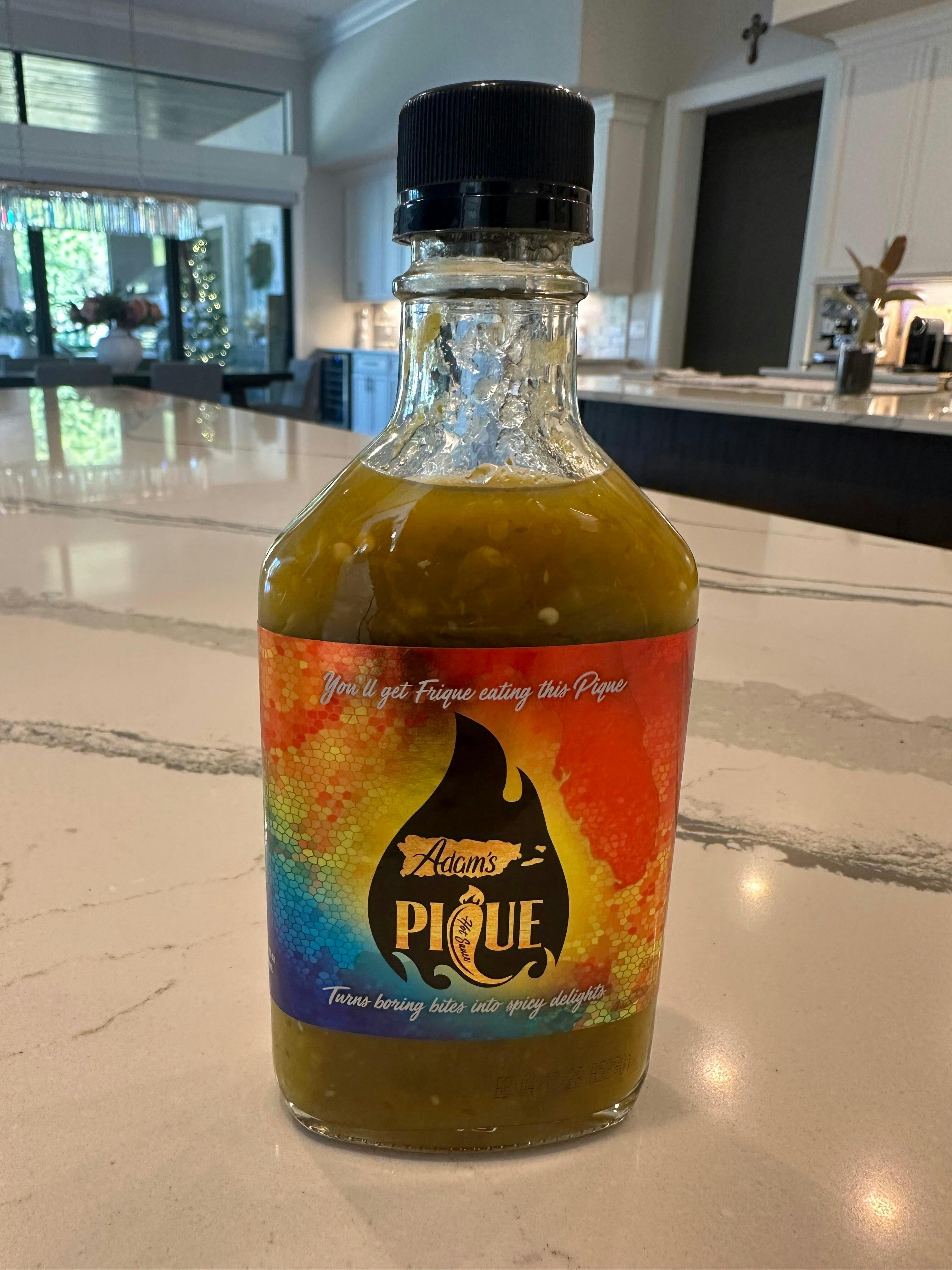 Adam’s hot sauce is truly something special. This isn’t your typical, cookie cutter hot sauce it’s complex, fresh, and you can actually see the real ingredients right in the bottle. The flavor is balanced and thoughtful: it has the perfect kick without overwhelming your food or burning your mouth.